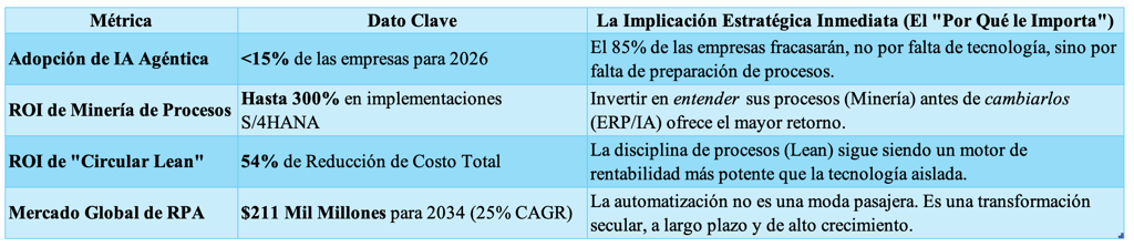 Menos del 15% de las empresas están listas para la IA agéntica. El 85% fracasará no por la tecnología, sino por la falta de procesos. Descubra la hoja de ruta estratégica que fusiona Lean, BPM y automatización inteligente para asegurar el éxito de la Empresa Autónoma.