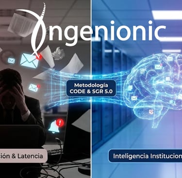 La metodología "Building a Second Brain" de Tiago Forte popularizó el acrónimo C.O.D.E. (Capturar, Organizar, Destilar, Expresar). En Ingenionic, hemos adaptado este ciclo para el entorno empresarial de alto rendimiento: